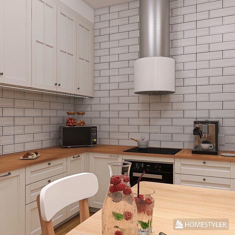 I designed the kitchen annex in a Scandinavian style with a touch of classic simplicity, based on proven systems that allow for the creation of functional and aesthetic spaces.